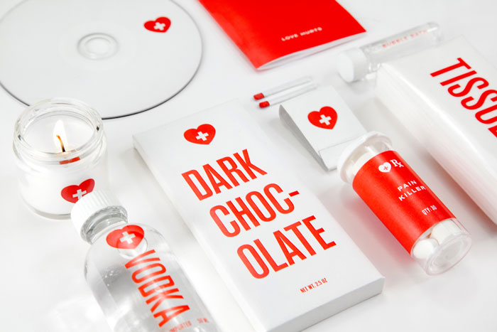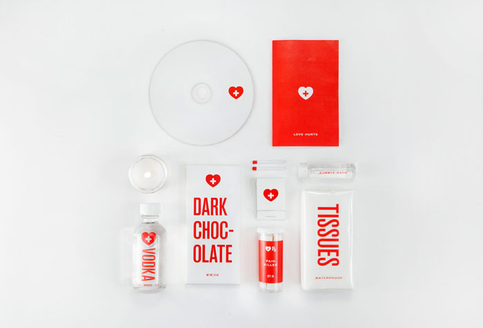 通過一個(gè)粗略的分手,如黑巧克力,伏特加,一個(gè)優(yōu)秀的混合光盤,如果一切都失敗,組織。所有的產(chǎn)品整齊地包裝在一個(gè)緊湊的套件。