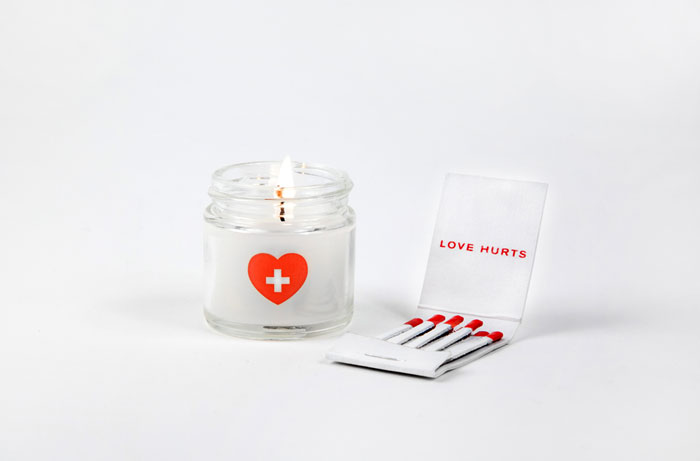 一個(gè)破碎的心的急救包。最初,我知道我不想做一個(gè)悲傷的工具,想用幽默感來接近這個(gè)產(chǎn)品。受傷的愛包含了所有的必需品,