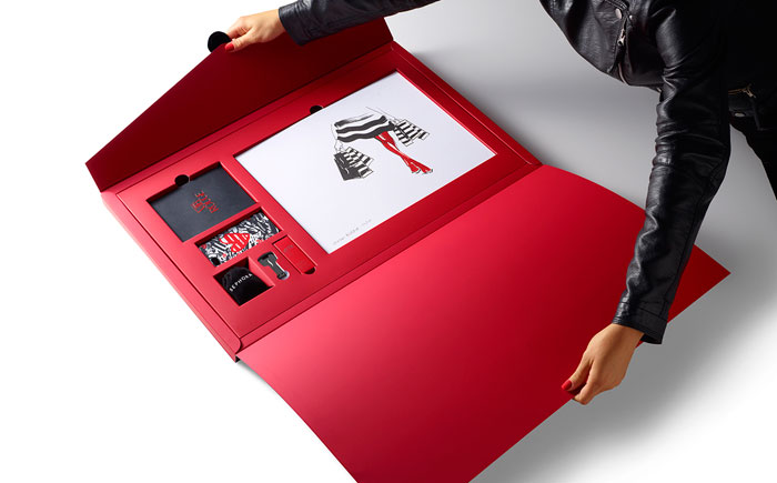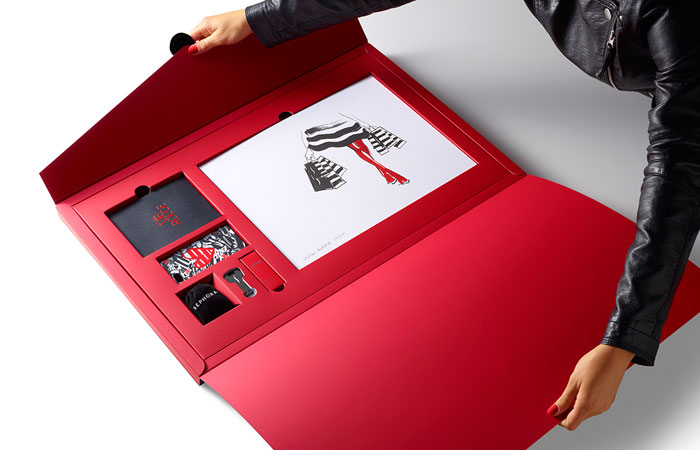 在前面的每一個(gè)圓滑,黑色,16“x24”信封,是收件人的姓名寫在紅色的書法。內(nèi)部是大量柔軟的胭脂紅,每按試劑盒項(xiàng)目很好地存放在自定義威爾斯。包括一個(gè)VIB胭脂歡迎包,一個(gè)全尺寸的咬唇膏在自定義胭脂紅色燈罩,絲芙蘭品牌iPhone案件和耳機(jī),和限量版編號的版畫藝術(shù)家路維薩·布菲特簽署。新聞稿本身被加載到一個(gè)光滑的黑色USB驅(qū)動(dòng)器在一個(gè)關(guān)鍵的形狀。從絲芙蘭個(gè)人歡迎信放在上面。”